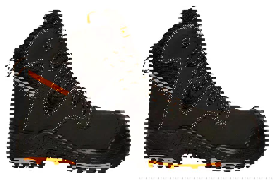 This lightweight water repellent black action nubuck boot has a high spec S3 safety rating. The highly durable Composite toe cap and midsole provide a lightweight, sure-footed feel even with the external heavy-duty scuff cap & heel protection. This style is rated SRC, the top rating for slip resistance under the EN ISO 20345:2011 standard with an oil-resistant outsole.
