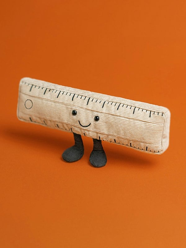 The Jellycat Amuseables Ruler is a playful addition to the Amuseables collection, designed as a soft plush ruler with a friendly embroidered face. Finished in beige, it brings a quirky character to desks, shelves, or gifting, adding a light-hearted touch to everyday spaces.