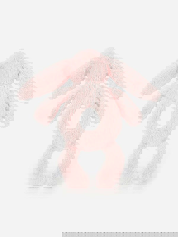 The Bashful Pink Bunny Ring Rattle by Jellycat is a soft toy designed for little hands. Featuring a sweet bunny in soft pink with floppy ears and a gentle rattle, it offers comforting play for babies from birth. The easy-to-grip ring shape makes it simple to hold during playtime, while the plush texture provides a soothing feel.