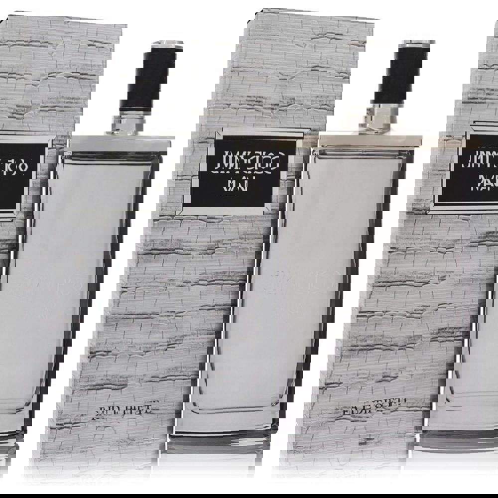 Presented in a sleek rectangular bottle with a silver-toned top and bold black cap, it is finished with the Jimmy Choo logo subtly embossed. The silver outer box is detailed with a crocodile-effect pattern for a distinctive, premium finish.