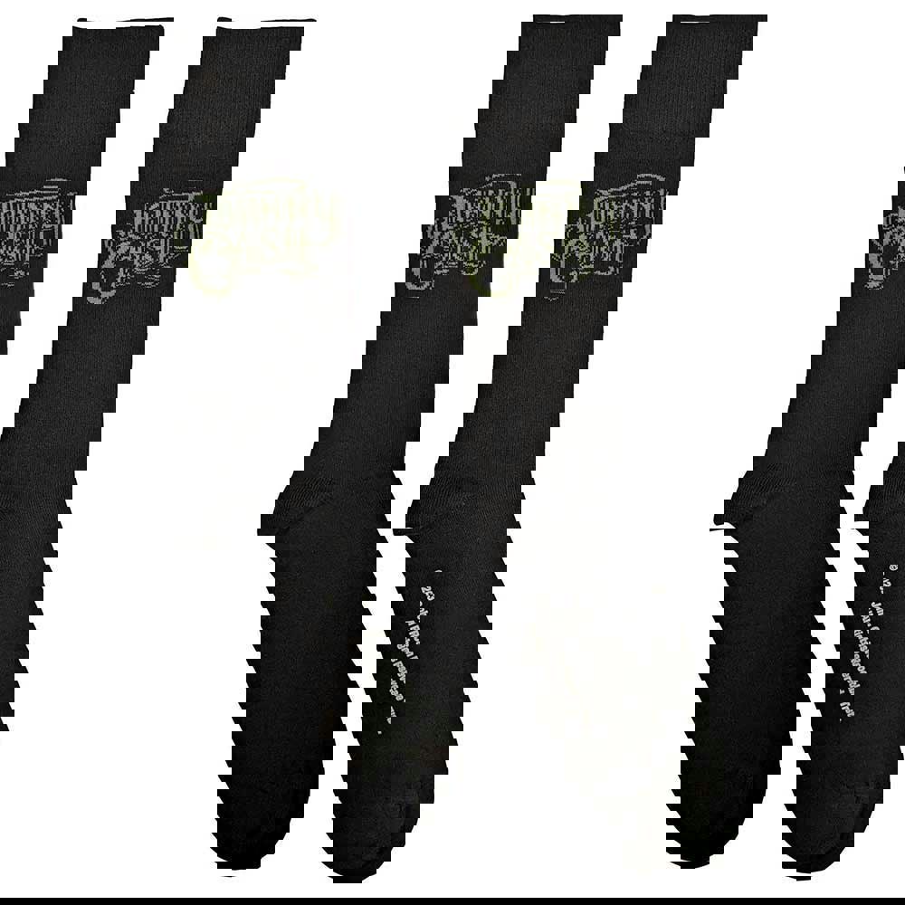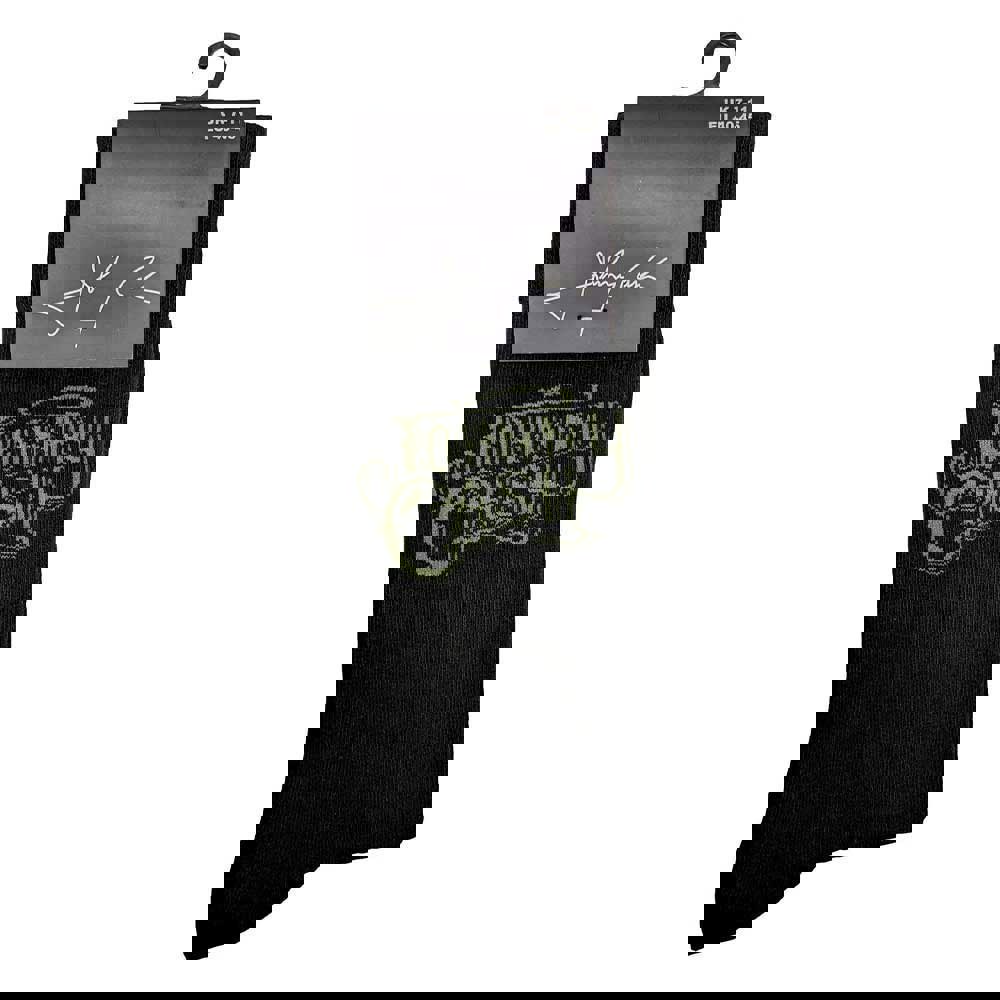 Official licensed Johnny Cash Unisex Ankle Socks featuring the 'Text Logo' design motif. These high quality Ankle Socks are available in a black colourway. These premium quality, colourful, all-over pattern cotton rich woven socks are guaranteed to stand out in the crowd.