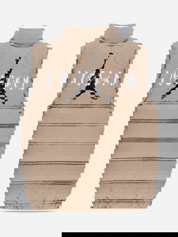This boys puffer filled gilet from Jordan comes in beige for a clean, neutral look. A sleeveless outerwear layer, it suits cooler days when extra warmth is needed without adding sleeves.