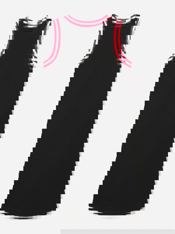 This girls’ black dress set pairs a sleeveless jersey dress with matching boxers. The top includes Jordan 23 metallic-effect embroidery, finished with ribbed stripe contrast trims. Branding continues with a Michael Jordan silhouette patch, printed with “Brand of Flight, ‘23 Quality Products Inspired By the Greatest Player Ever”.