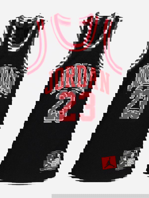This girls 23 jersey dress from Jordan comes in black with contrast trims for a clean, sporty look. It has a round neck and a sleeveless cut, finished in jersey made from 60% cotton and 40% polyester. Matching bloomers are included with selected sizes.