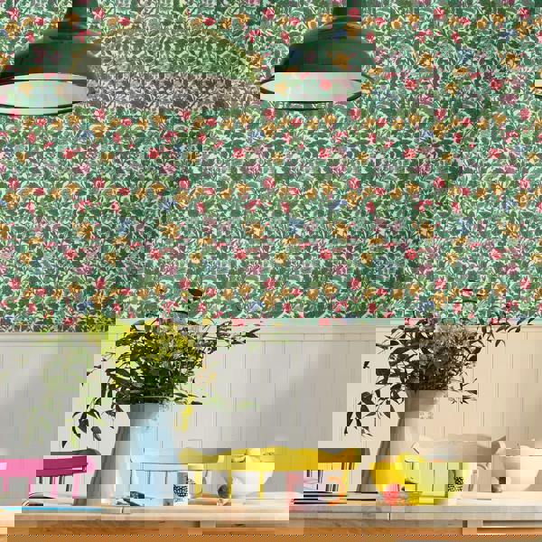 Bursting with colour and capturing the rustic idyll of the Arts & Crafts movement, this utterly charming floral wallpaper is a delightful addition to any home. The bold colours and repeating botanical design uses primary colours, including cornflower blue, bright red and warm orange, to create a bold display of spring flowers. Arts and Craft wallpaper is a big trend right now, embracing that simpler time when summers went on forever. This modern take on a heritage design works particularly well in a cottage or country-style house. It a Paste-The-Wall wallpaper too, so it super-easy to hang. William Morris would be proud!