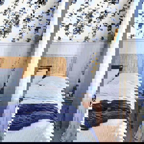 Boho bloom is a beautiful watercolour style trailing floral wallpaper. The captivating tones of mid to deep blues perfectly capture the intricate detail of the watercolour flowers and foliage which elegantly trail up this statement design. They sit upon a warm creme background. We recommend placing it with antique furniture and natural tones for a classic coastal look. This wallpaper is also paste the wall, making it easy to hang.