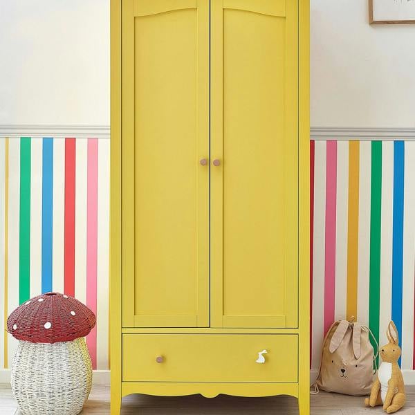 Bold, bright and fun, the chunky stripe will add colour and life to your home. An iconic stripe design in five bright rainbow colours pop beautifully upon a white background. Printed on a matt substrate for a contemporary look and feel. This wallpaper is also paste-the-wall, making it easy to hang.