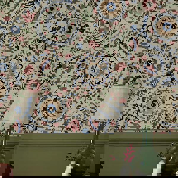 Turn your walls into a festival of flowers in this striking design where traditional florals meet modern boho patterns. The muted tones of mid to deep blues, reds and garden greens perfectly capture the intricate detail of the watercolour flowers which elegantly flow through this statement wallpaper. Printed on a matt substrate for a contemporary look and feel. This wallpaper is also paste-the-wall, making it easy to hang.