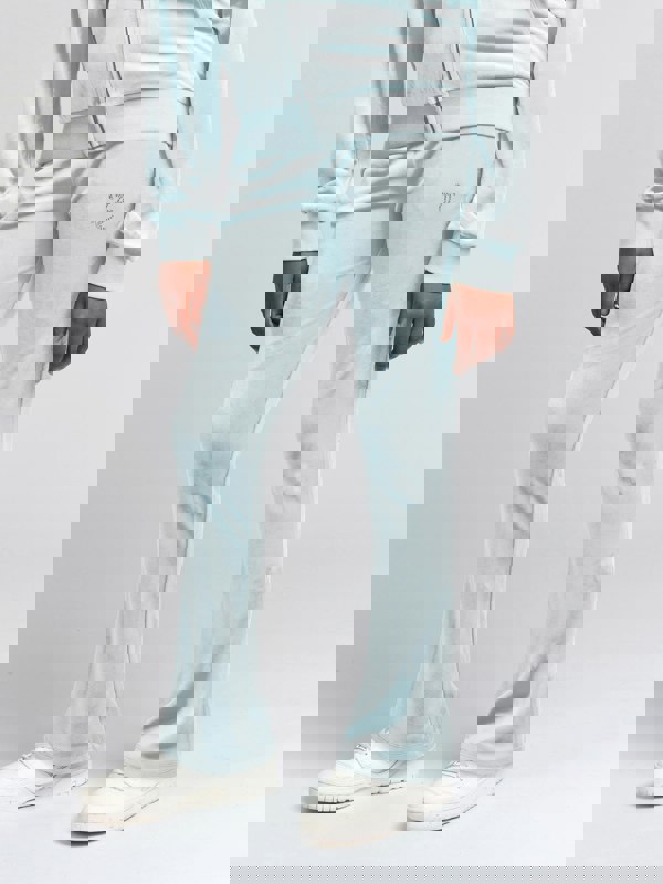 These girls’ stone blue joggers bring a signature Juicy Couture look to casual dressing. Made in refined velour, they use a bootcut shape and an elasticated waistband for an easy pull-on finish. Pockets add a practical detail, while the iconic silver sparkly JC motif completes the design.