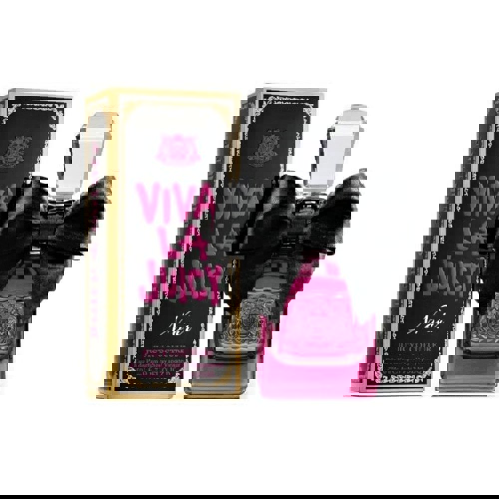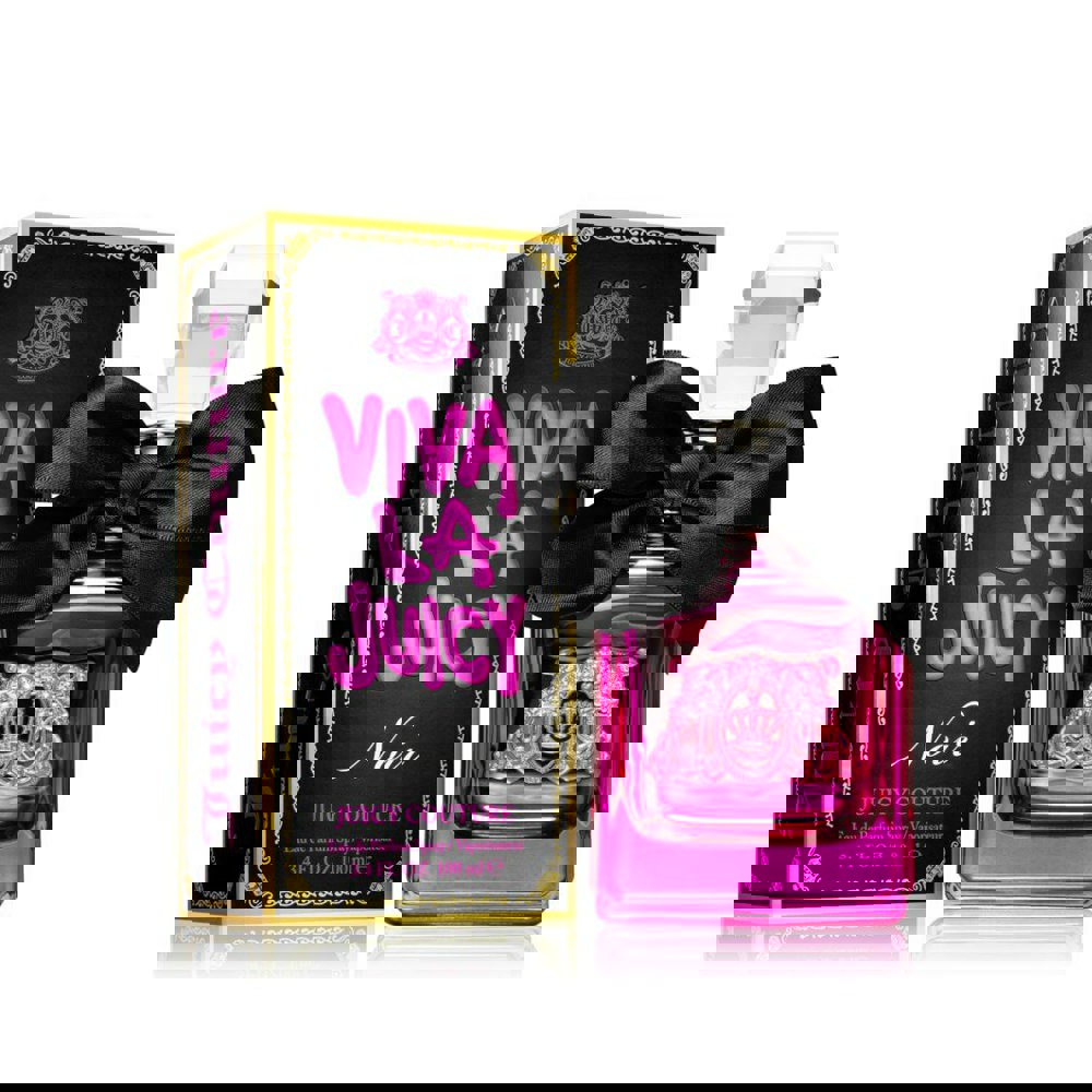 Presented in the stunning Viva La Juicy vintage-inspired statement bottle etched with the Juicy Couture crest in striking pink with a black satin bow. The bottle uses a complex metallization technique to create a liquid pink metal effect.