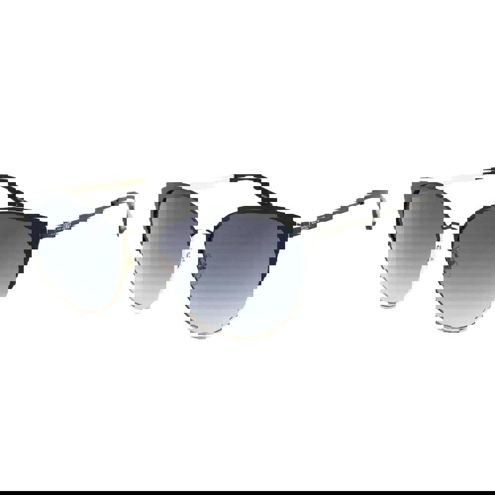 A sleek cat-eye silhouette brings a directional finish to these womens sunglasses from Juicy Couture. The grey colourway is paired with a semi-full rim profile, balancing definition with a lighter look around the lens. A mixed metal and plastic frame keeps the design clean and contemporary, while polycarbonate lenses are finished with a gradient tint.