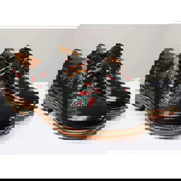 * Unique Floral Skull Print Design: Features a bold and distinctive black floral skull print that adds a touch of personality and edge to a classic design, making these shoes a standout accessory
