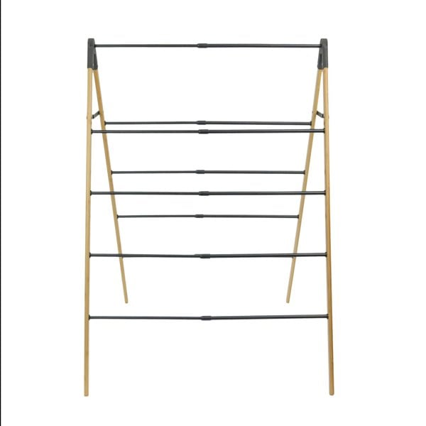 The ideal solution for drying clothes indoors when space is minimal. Our Bamboo 4 tier, extendable clothes ladder is a convenient and efficient drying solution that can be used both indoors and outdoors, constructed with durable bamboo frame and a fresh black powder coated finish, the indoor airer provides 6 metres of drying space to hang laundry item. Its compact design allows it to fit seamlessly into any room of your home, while its telescopic mechanism allows it to extend should you require more drying space, making it an essential addition to any household. And, when you’re done, it simply folds away to give you your space back whether you live in a small home, apartment or want to take it to your holiday home/caravan, the indoor airer offers a practical and cost-effective way to keep your clothes fresh and dry, without the need for a costly dryer or outdoor space.