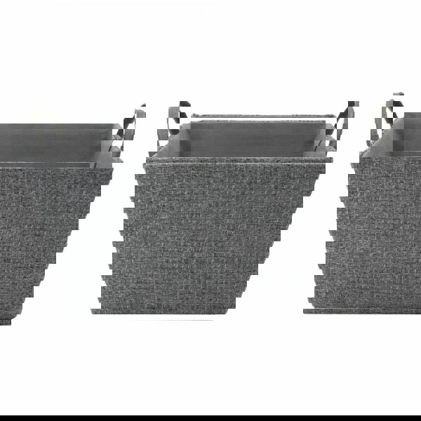 Our Chroma storage collection in soft charcoal grey links perfectly with the Scandinavian style interior trend, if you’re looking for dark accent colours to accessorise your home then our Chroma range is the one for you. This tapered storage basket is designed to fit with your household decoration. It is versatile and ideal for small garments, jewellery, make up, toys, towels, linens, baby products and more. You can use them for storing bits and pieces around the home such as in a bedroom, living room, playroom, utility room or children’s bedrooms. It is an attractive open storage box with faux leather handle details adding that finishing touch. This versatile design is suitable for open units or wardrobes for organising clothes, as well as plenty more.
