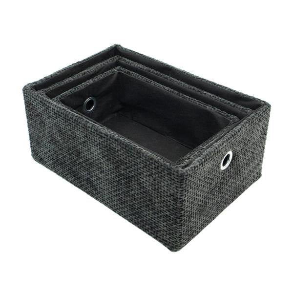 Our Metro storage collection adds a premium, modern, intentional element, in a striking rich black colour, and textured velour fabric, creating contrast and visual interest in any interior decor. These storage baskets are designed to fit with your household decoration. They are really versatile and ideal for small garments, jewellery, make up, accessories and much more. They are an attractive open storage basket with circular chrome effect handle hole detail adding that finishing touch. They can be used for storing bits and pieces around the home such as in bedrooms or a variety of living spaces.