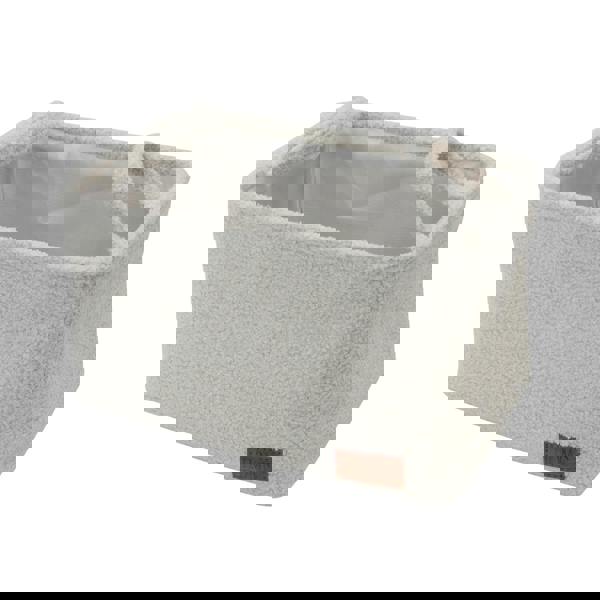 Our Shiro storage collection adds a modern, elegant aesthetic with its soft boucle textured fabric and the light colour palette complements most home interiors. The boucle material gives a textured plush, tactile feel, pleasing to touch and visually interesting. These storage baskets are designed to fit with your household decoration. They’re versatile and ideal for small garments, jewellery, make up, accessories and much more. They are really versatile and ideal for small garments, jewellery, make up, baby’s accessories and more. A large attractive open storage basket with handles. The circular chrome effect handle hole and faux leather sewn label detail adding the finishing touches. You can use them for storing bits and pieces around the home such as in a bedroom, living room, playroom, utility room or children’s space.