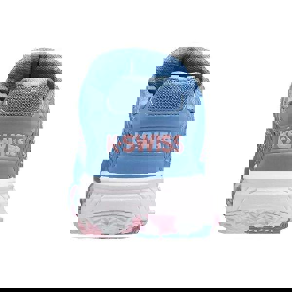K-Swiss Hypercourt Express 2 tennis trainers in blue and white with a low-cut profile and flat sole. The upper is made from faux leather, finished with contrast panels and a logo detail. A round toe and lace-up fastening provide a secure fit, while 12 eyelets complete the look.