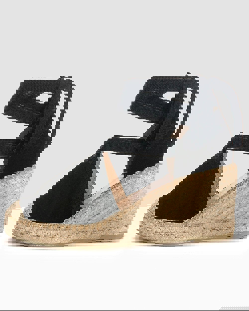 Lace tie espadrille wedge sandals in suede.