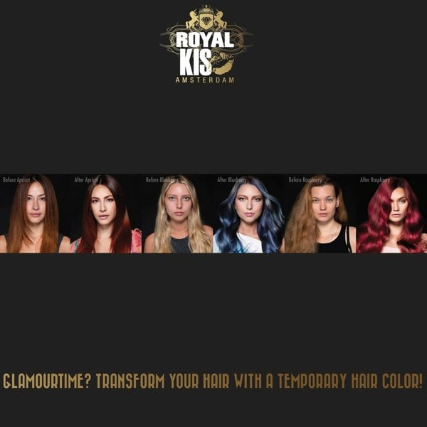 With the new Royal Kis Glam Wash you transform your hair quickly and easily with a trendy colour. A quick wash and you are ready for that festival or party. The colour washes out gradually so no outgrowth. You can choose from five colours. So, a different look for every party. For a true glamour make-over!