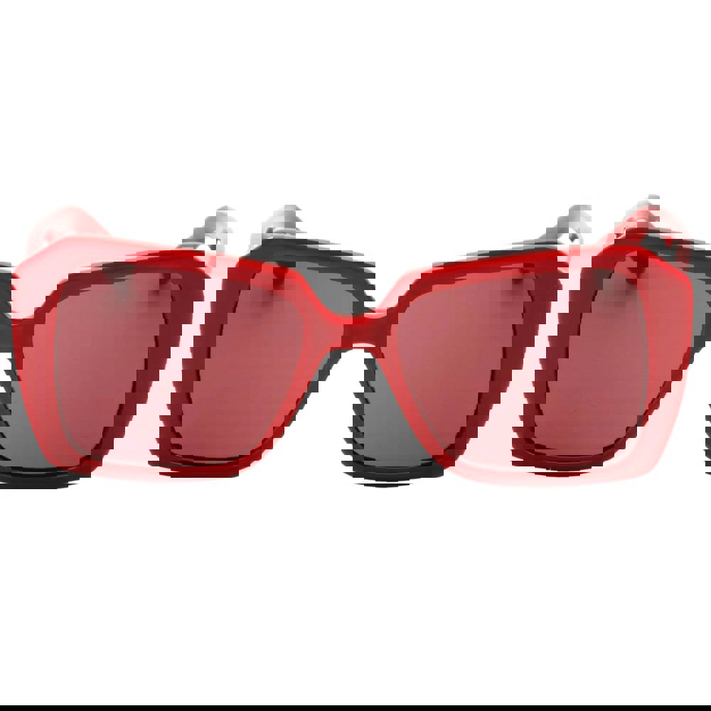 Featuring a striking red frame paired with brown lenses, these sunglasses offer both fashion and function.