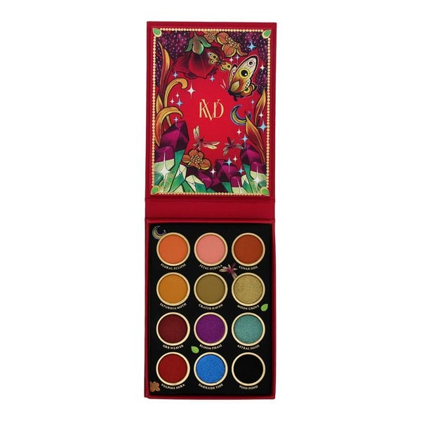 The Kat Von D Moongarden Eyeshadow Palette is a limited-edition palette featuring twelve highly pigmented, vegan shadows in a mix of matte, satin, metallic, and shimmer finishes.