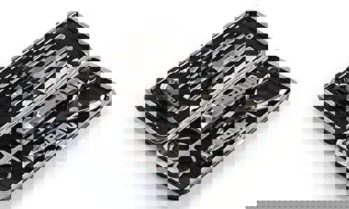 The KAV Luxury Manicure and Pedicure Set is a premium 12-piece grooming kit crafted from 100% heavy-duty stainless steel. Designed for both durability and style, it comes in a sleek PU leather case, making it perfect for travel or home use. Ideal as a gift for birthdays, anniversaries, or special occasions, this set combines functionality with elegance.