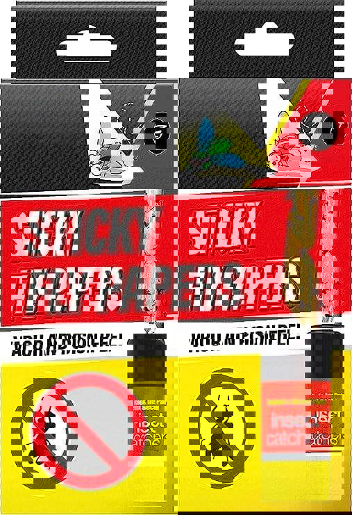 Pack of 16 sticky fly catchers. Powerful adhesive traps flying insects indoors or outdoors. Eco-friendly and easy to use.