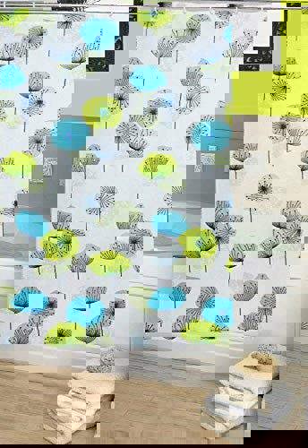 Details: Ready to hang Shower curtain made of 100% Polyester and of size 2. 2m ( width) x 1. 80 m Drop EXTRA WIDE, IDEAL FOR BIG SHOWER & Baths