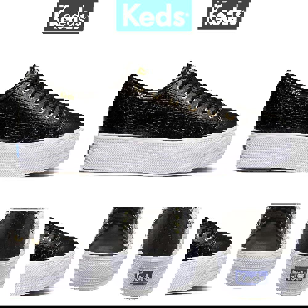 Keds Triple Kick Croc Leather Black Women’s Platform Trainers UK 3. 5