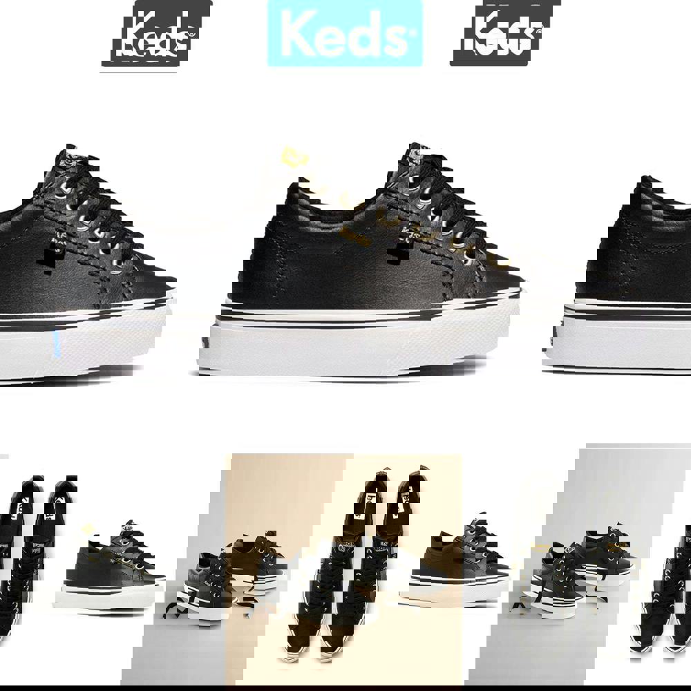Box Includes: Keds Women's Sneaker Jump Kick Leather - Black/Gold, Size - 4. 5
