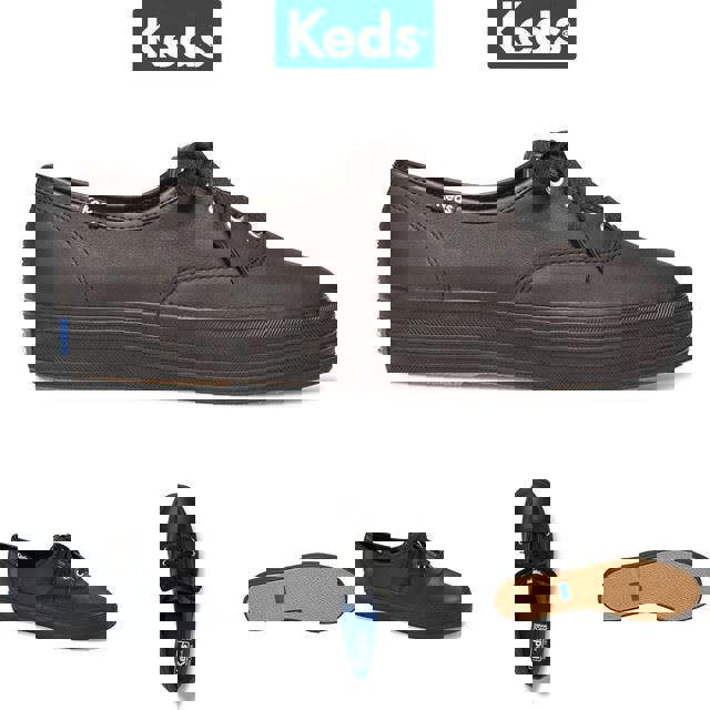 Box Includes: Keds Women's Sneaker Triple Cvo Leather - Black/Black, Size - 6