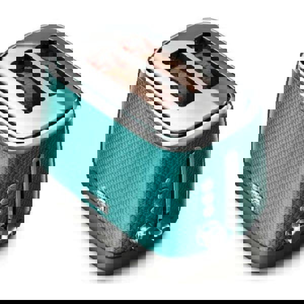 The Mesmerine Toaster's enchanting 3D diamond pattern will instantly stand out in your kitchen. This toaster is suitable for two slices of bread and comes with a handy warming rack for warming rolls. The toaster has six browning levels; create your favourite toast by adjusting the browning level yourself. The model is equipped with various functions to make toasting bread easier. Use the defrost function to heat frozen bread immediately, the reheat function to reheat cooled rolls, and you can stop the process at any time with the cancel function. The toaster features illuminated control buttons. No more crumbs after use: the removable crumb tray catches all the crumbs, making the toaster easy to clean.