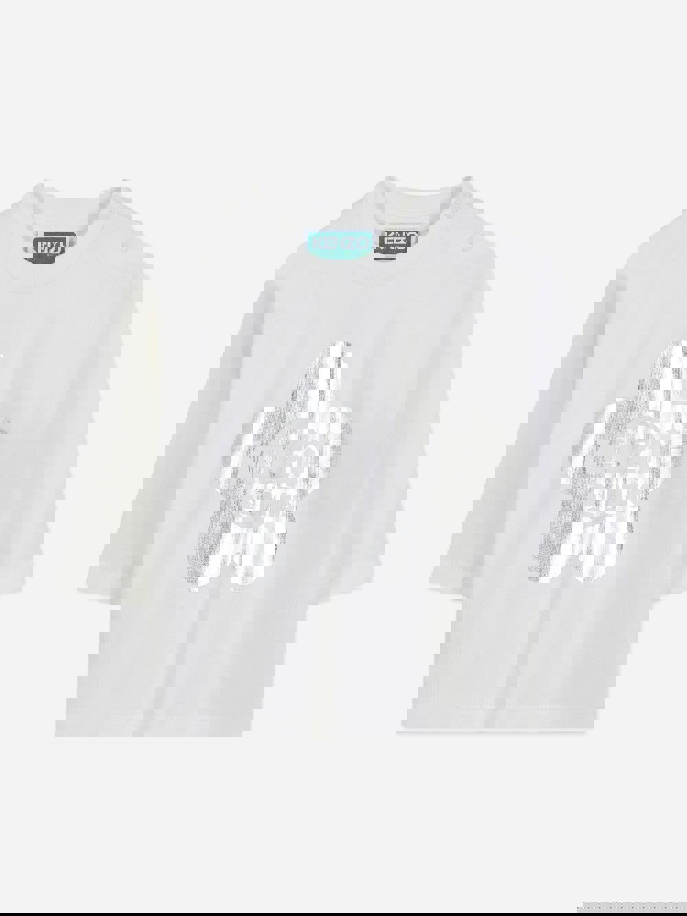 This Kenzo baby girls long sleeve T-shirt comes in an ivory colourway with a Kenzo logo on the front. A simple wardrobe staple with a clean finish, it suits everyday wear and keeps the look focused on the brand’s signature detail.