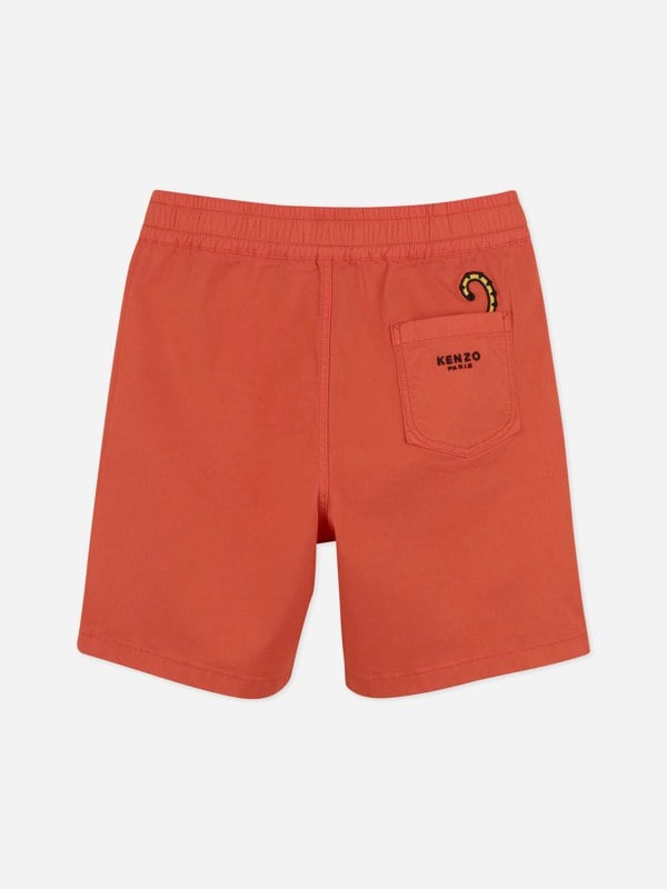 These KENZO boys shorts come in a bright red Bermuda style, made in cotton twill with added stretch. The elasticated waistband includes drawstrings for an adjustable fit, while pockets at the sides and back keep the look practical and clean.