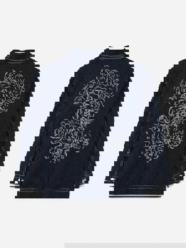Kenzo Kids denim jacket in blue with embroidered tiger detailing. A statement outer layer for the AW2025 season, finished with Kenzo’s signature tiger motif for a distinctive look. The denim construction keeps the design classic and easy to wear as part of a layered outfit.