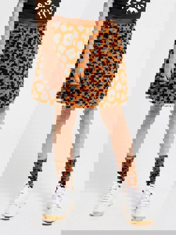 Kenzo Kids girls leopard skirt in orange from the AW2024 collection. The all-over leopard motif brings a bold look, with an orange colourway that stands out. A statement piece from the Kenzo house, finished with a distinctive print that reflects the brand’s signature style.