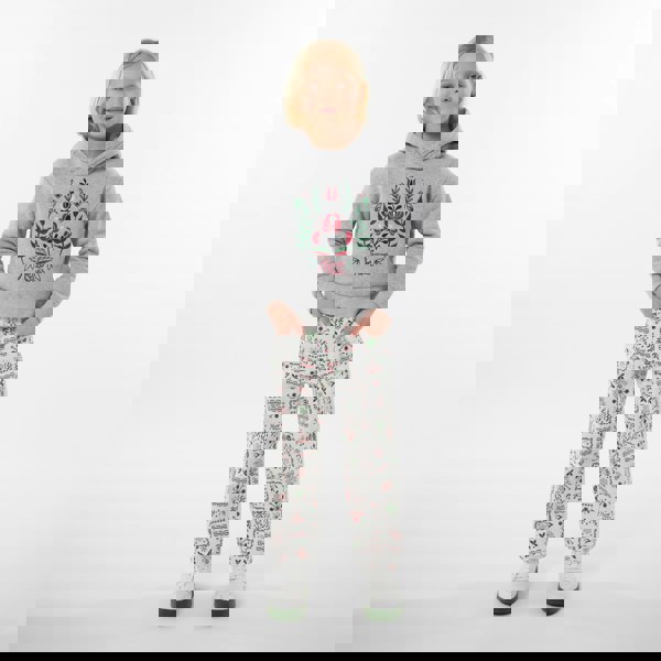 Kenzo girls seasonal print trousers in ivory. A seasonal print runs through the design, bringing a bold look suited to Christmas occasions. The trousers are finished in an ivory colourway and presented as part of the Kenzo Kids collection.