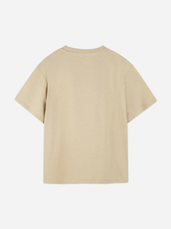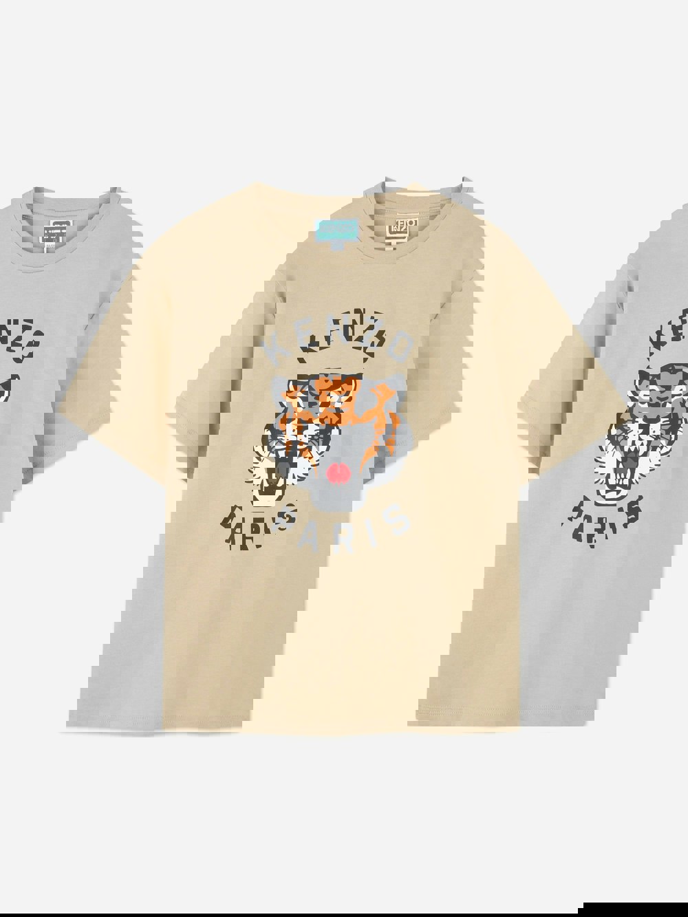 Kenzo Kids Lucky Tiger T-shirt in beige brings a bold graphic finish to a simple everyday staple. The front is embellished with the brand’s iconic tiger motif, creating a distinctive look that stands out while keeping the design clean and easy to wear across seasons. The neutral beige colourway keeps the overall style understated, making the statement print the main focus.