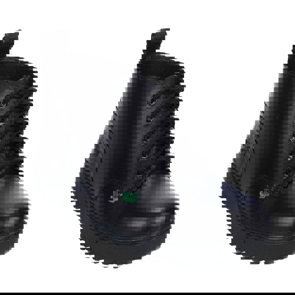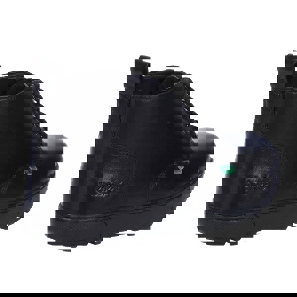 Kickers Disley ankle boots in black with a plain finish and logo detail. The upper is leather, with a synthetic lining, insole and midsole. A round toe and flat profile keep the shape clean and simple, while the ankle-high cut adds coverage around the ankle.