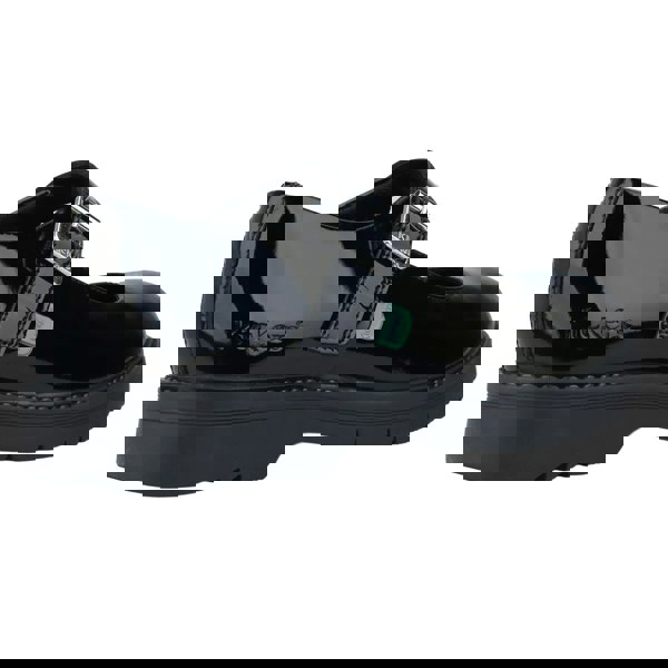 These patent shoes offer a clean, plain finish with logo detailing and a round toe. The leather upper is paired with a textile lining, plus a synthetic insole and midsole for a structured feel. An adjustable buckle and padded collar add practical comfort details, while the slip-on fastening keeps the profile simple for everyday wear.