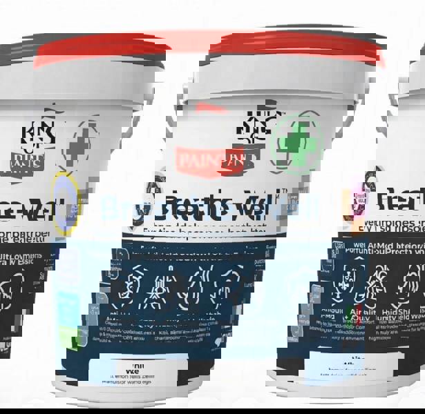 From King of Paints, Breathe-Well™ is a premium 5-litre anti-mould breathable Paint created for damp homes in the UK, particularly where condensation is a recurring issue. Developed for use on walls and ceilings, it combines Class 0 mould resistance with Class I high breathability, helping walls release trapped moisture and supporting a drier surface in high-humidity rooms.