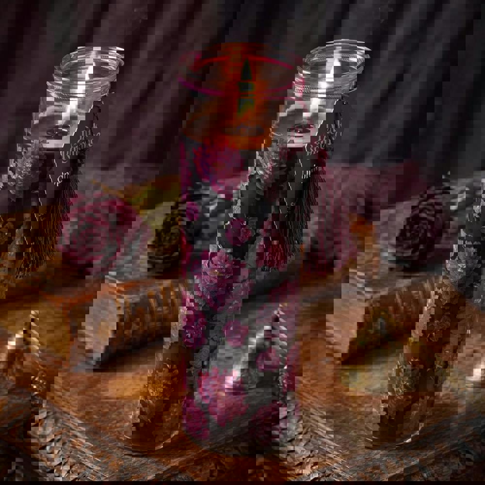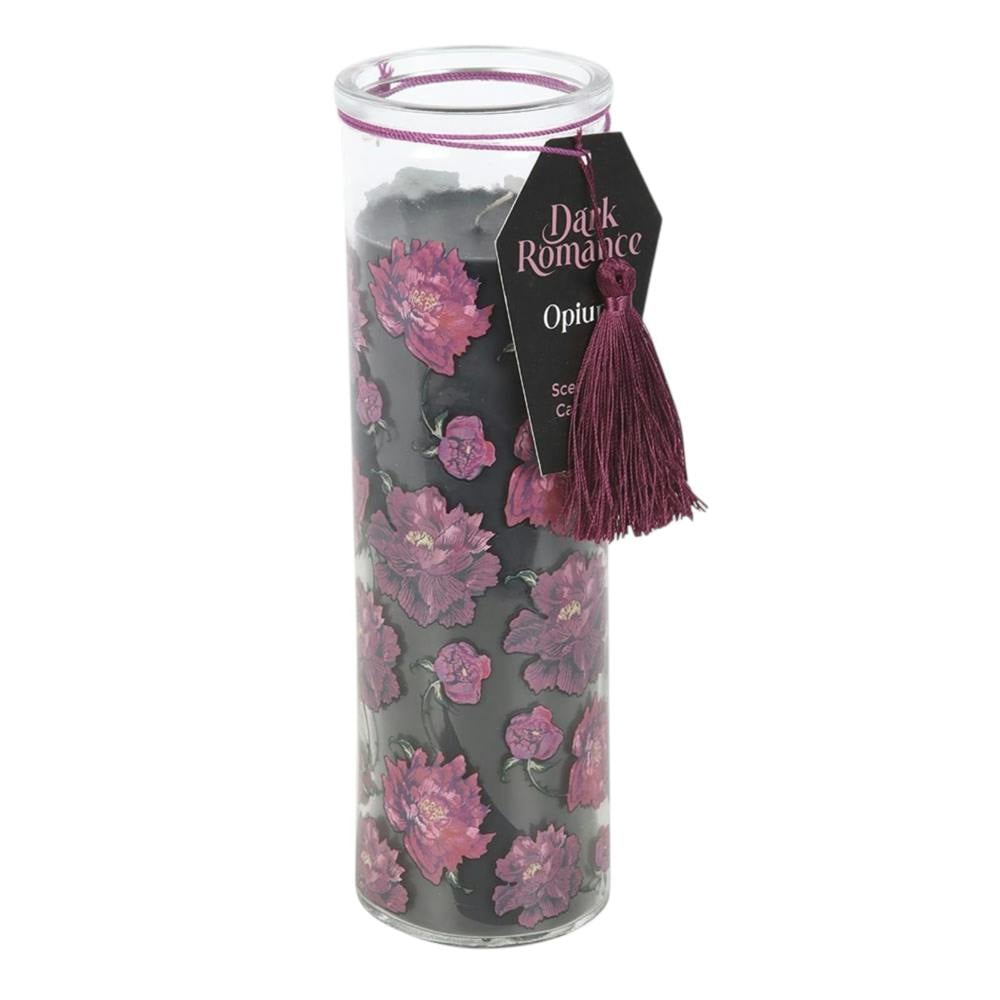 Elevate your home’s ambiance with this Opium Scented Candle. Featuring deep, velvety wax inside a beautifully illustrated floral glass tube, this candle offers a luxurious fragrance and an enchanting glow perfect for romantic evenings and sophisticated decor. Never leave a lit candle unattended.