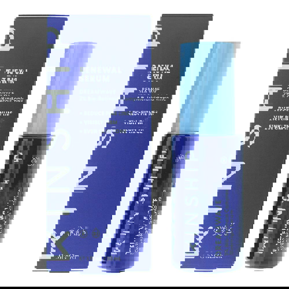 Kinship Dreamwave 2% Bio-Retinoid Complex Serum is a facial serum with a 2% bio-retinoid complex. It comes in a 30ml size and is intended for topical skincare use as part of a routine.