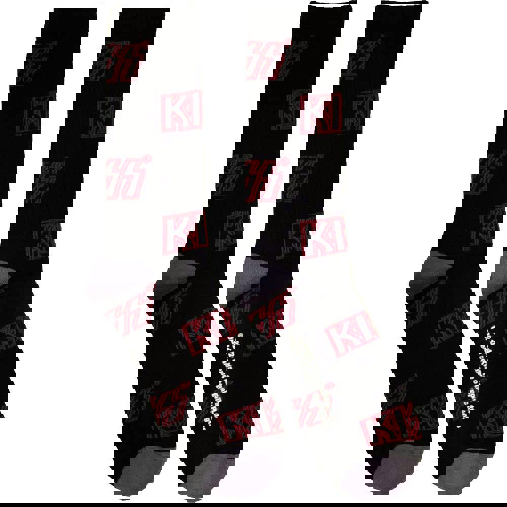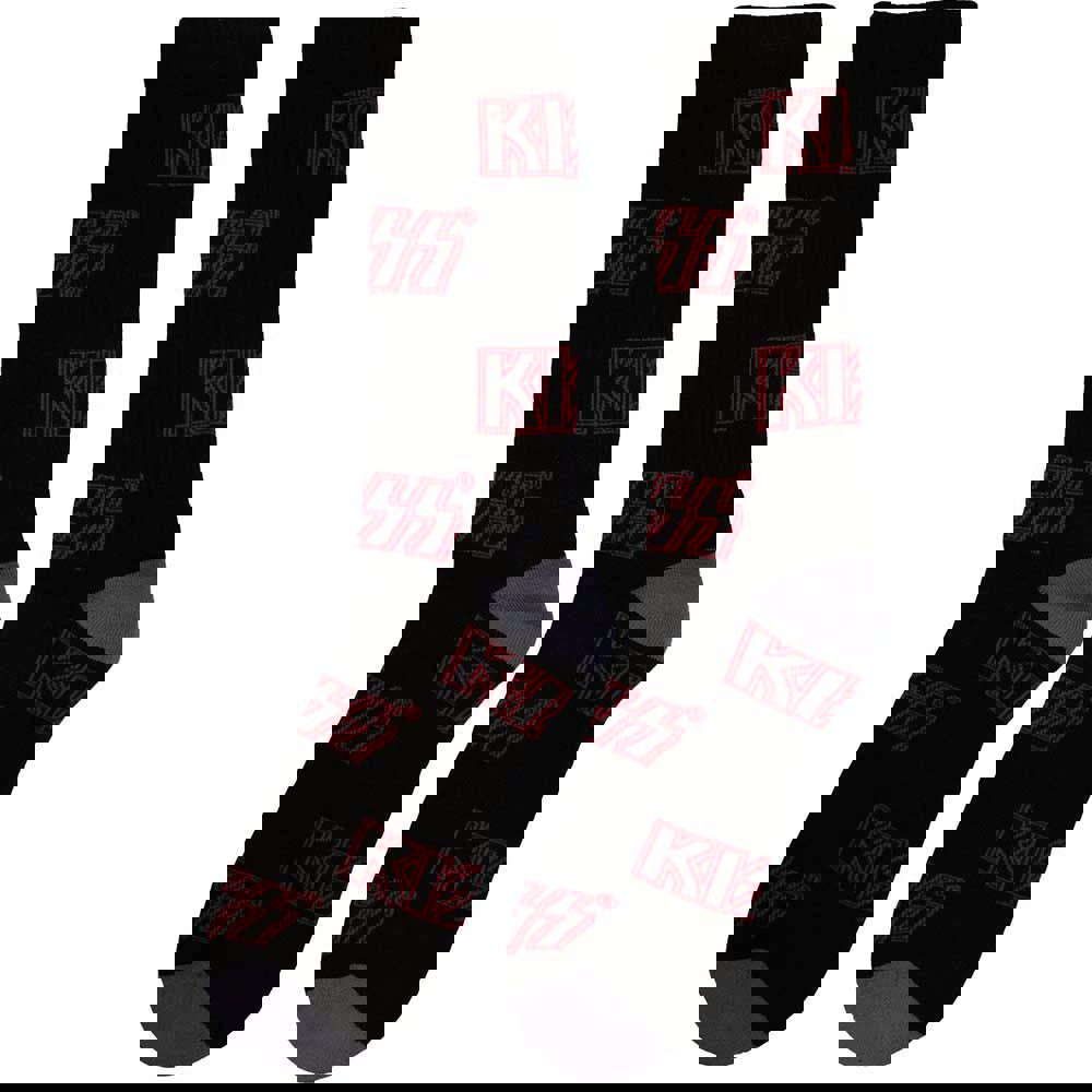 Official licensed KISS Unisex Terry Socks featuring the 'Logo Pattern' design motif. High quality Terry Socks available in a black colourway. These premium quality, colourful, all-over pattern cotton rich woven socks are guaranteed to stand out in the crowd. They are a thicker quality cotton similar to sports quality terrycloth.