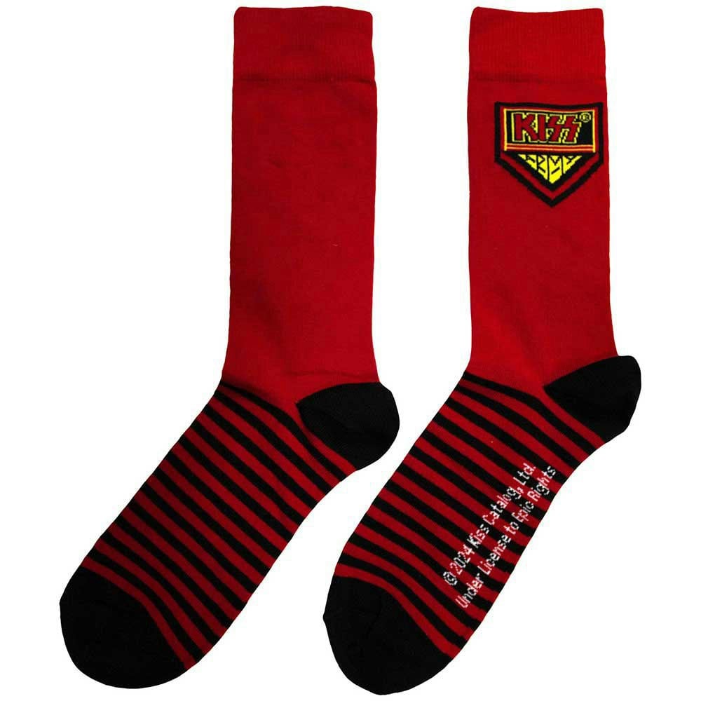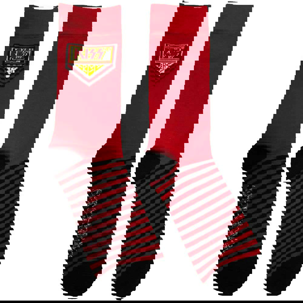 Official licensed KISS Unisex Ankle Socks featuring the 'Army' design motif. High quality Ankle Socks available in a red colourway. These premium quality, colourful, all-over pattern cotton rich woven socks are guaranteed to stand out in the crowd.