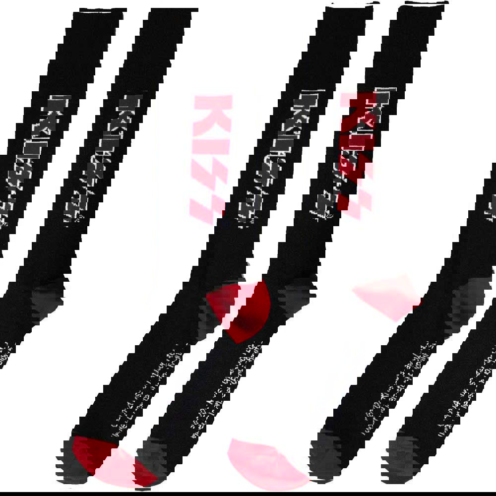 Official licensed KISS Unisex Ankle Socks featuring the 'Red Logo' design motif. High quality Ankle Socks available in a black colourway. These premium quality, colourful, all-over pattern cotton rich woven socks are guaranteed to stand out in the crowd.