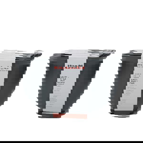 This KitchenAid 3pc Mixing Bowl Set includes one 2. 4 litre (81 fl. oz) bowl, one 3. 3 litre (112 fl. oz) bowl and one 4. 3 litre (145 fl. oz) bowl. All feature non-slip bases that increase stability while mixing, plus pouring spouts to reduce spills when transferring ingredients. The bowls nest together when not in use for easy storage, and are dishwasher safe for easy clean up.