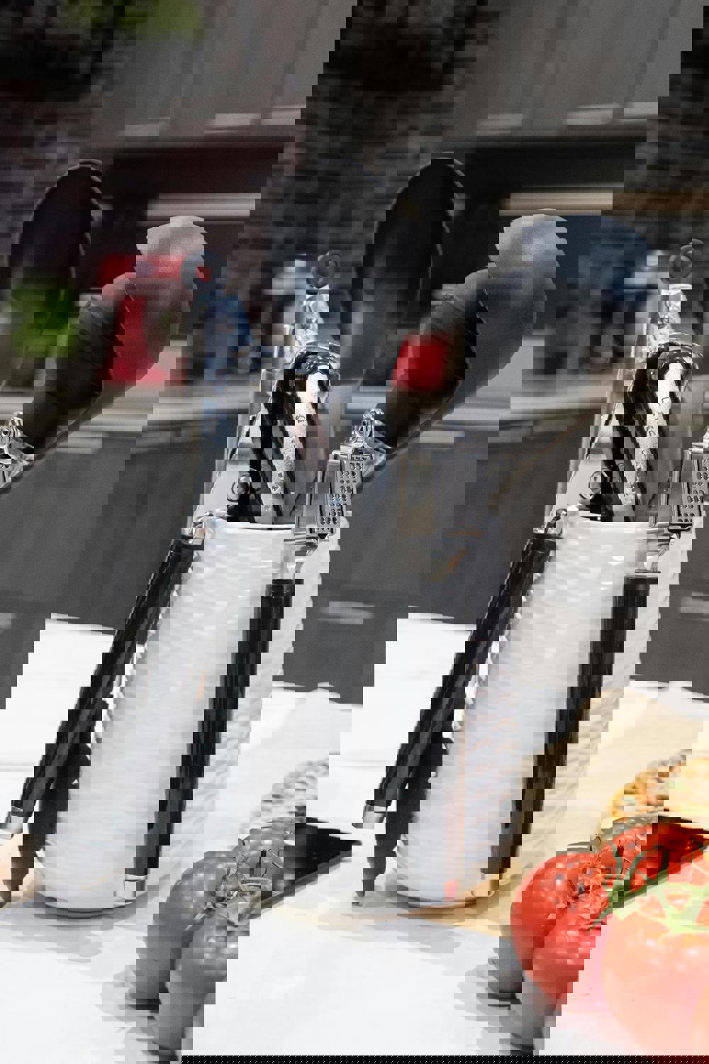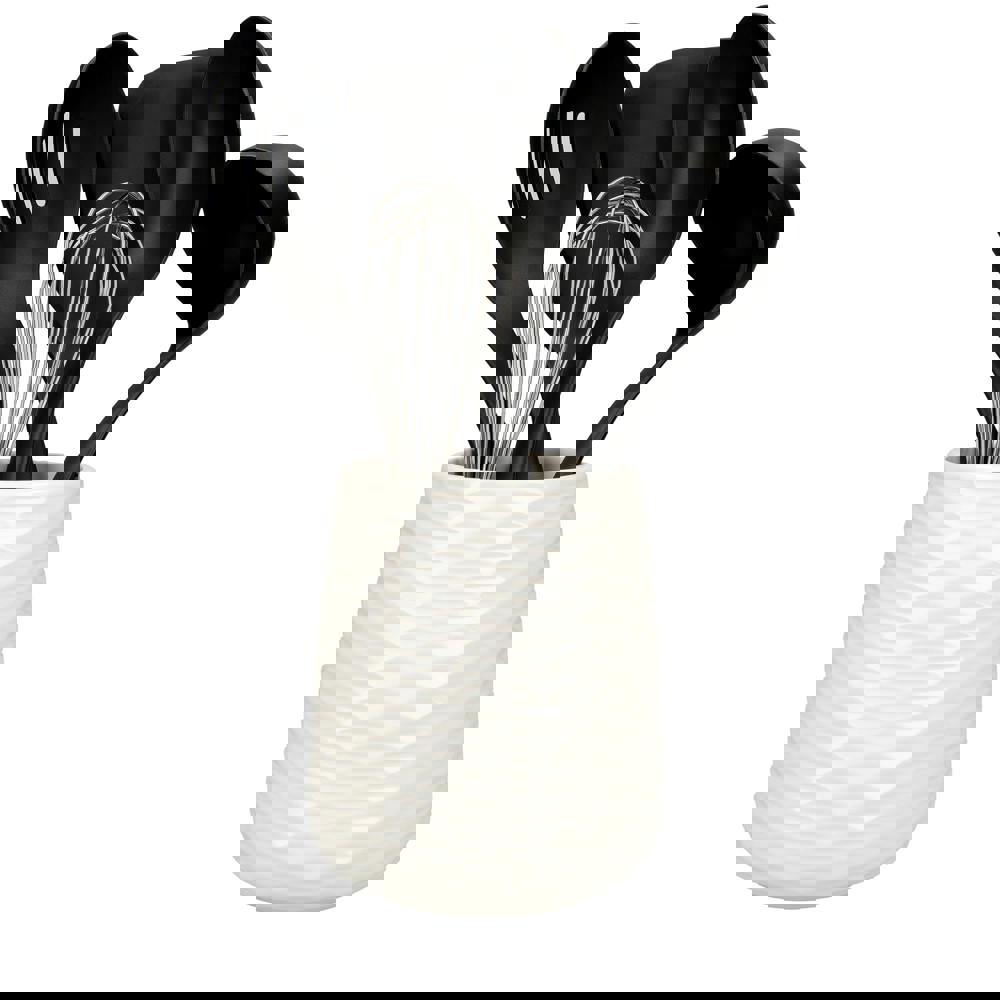 This KitchenAid 6-piece Kitchen Tool Set includes a solid turner, cooking spoon, slotted spoon, ladle, balloon whisk and ceramic utensil holder. The tools are strong, durable and safe for all cookware, including non-stick (except for the whisk). Heads are heat resistant to 232°C/450°F. Dishwasher safe for easy cleanup.