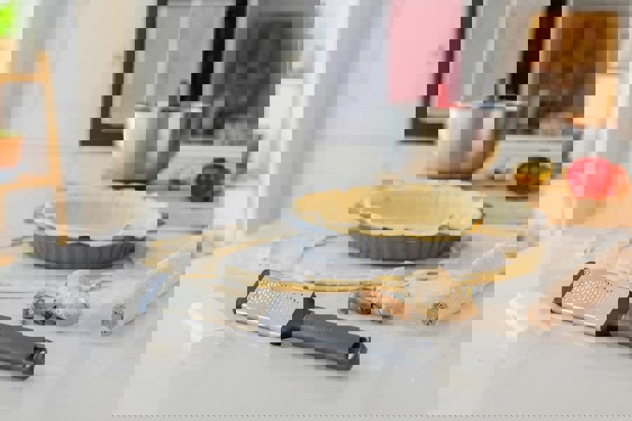 Finished with a smooth charcoal grey handle, this essential grater features unique micro-serrations that grate in both directions for faster, more efficient results, perfect for ginger and nutmeg or zesting lemons, limes and fruits. The high-quality stainless steel grater head offers strength and precision, while the cushioned non-slip foot provides added stability for grating directly into bowls, onto cutting boards, or over any flat surface. A protective blade cover is included for safe storage when not in use.