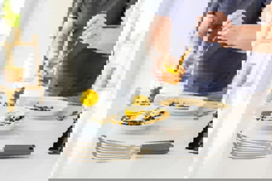 Measuring 31. 5cm and finished with a smooth Charcoal Grey handle, this flexible turner is perfect for handling fish, omelettes, crepes, and other fragile ingredients without breaking them apart. The flexible turner head is crafted from tempered, rust-resistant stainless steel that bends slightly to glide easily under food, making it ideal for folding, flipping, and lifting.